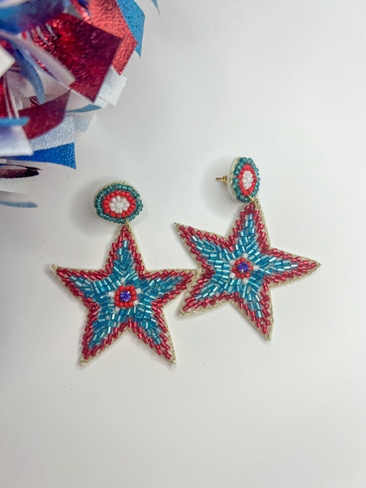 Patriotic Star Beaded Earrings